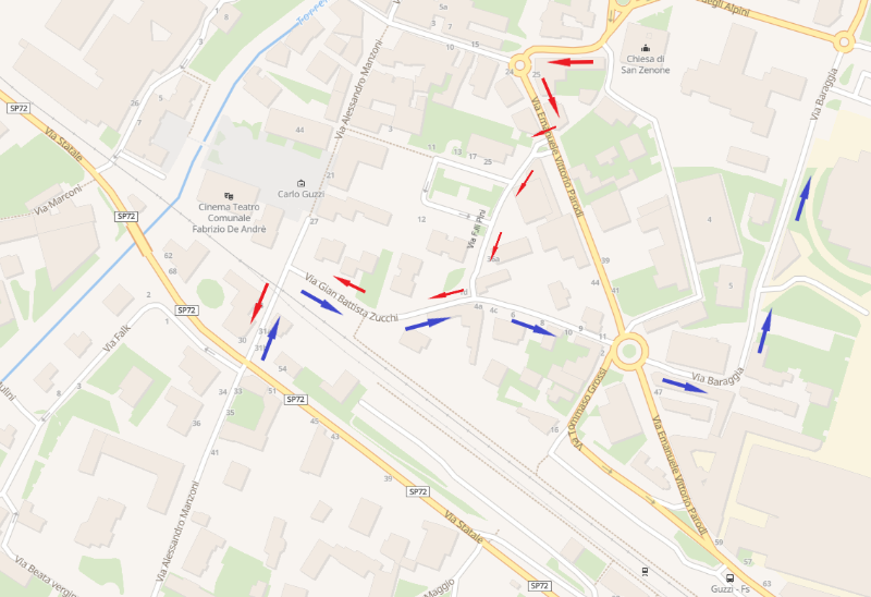 I veicoli in entrata da Mandello percorreranno via Manzoni, via G.B. Zucchi fino alla rotonda delle Poste, per riprendere così la viabilità ordinaria; in uscita potranno svoltare in via F.lli Pini, percorrere un tratto di via G.B. Zucchi a doppio senso fino a via Manzoni, per poi immettersi sulla Provinciale 72. Il traffico pesante da e verso le aziende mandellesi, invece, avrà come viabilità alternativa via Costituzione, via Petrarca e via Risorgimento.