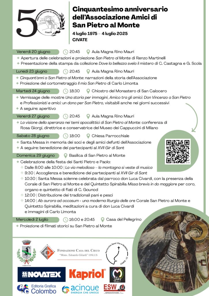 CIVATE, 15 GIUGNO 2025 – A partire dalla prossima settimana si terranno tanti eventi ed iniziative per celebrare il 50° Anniversario della Fondazione dell’Associazione Amici di San Pietro al Monte.