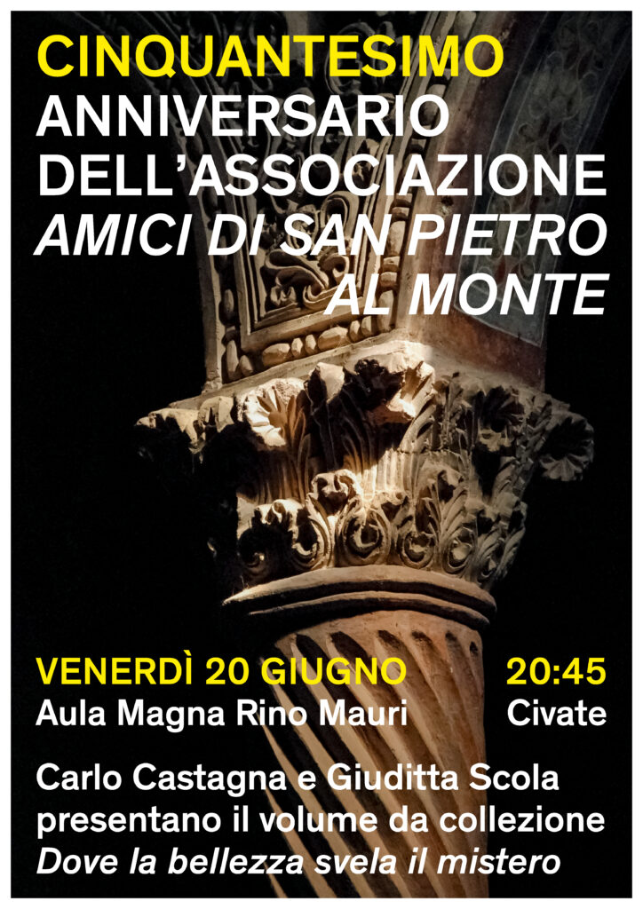 In particolare venerdì 20 giugno alle ore ore 21.00 presso l’Aula Magna “Rino Mauri” ci sarà l’apertura delle celebrazioni con la proiezione del cortometraggio San Pietro al Monte di Renzo Martinelli e la presentazione del volume da collezione “Dove la bellezza svela il mistero” di Carlo Castagna e Giuditta Scola.